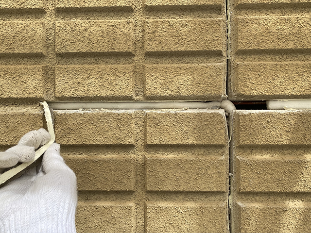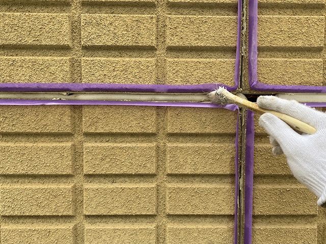 撤去後に、プライマーを塗布します。この工程をしっかりしないと、コーキングの密着が弱くなりますので、コーキングの寿命が短くなってしまいます。
