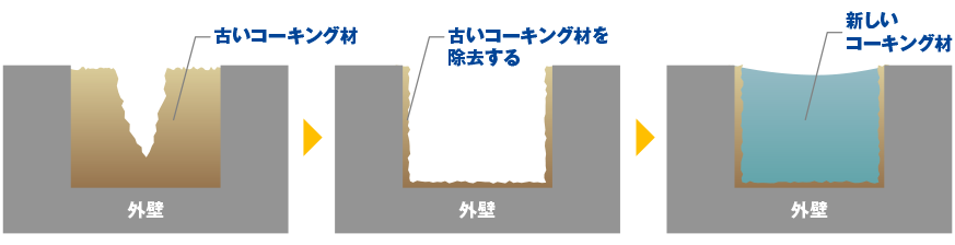 既存の劣化したコーキング材を全て剥がして新しくする方法です。
