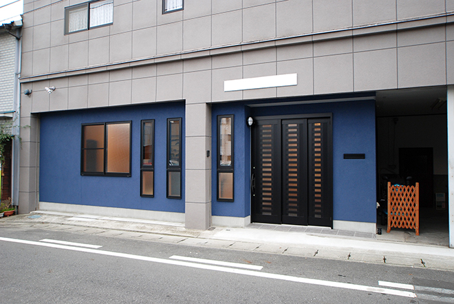 店舗だった1階部分のショーウィンドウを住宅用の玄関となるように、車庫側に拡げました