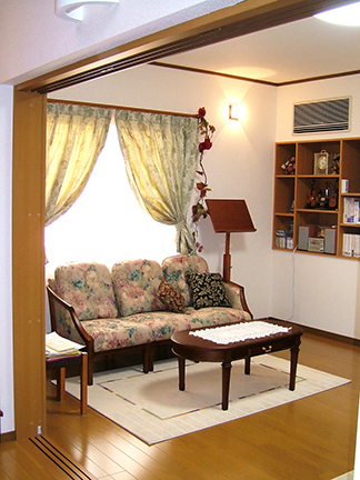 玄関を開けて中に入ると、目の前にホールと吹き抜け階段が広がり明るく開放感が得られるようになりました。ホールからリビングに通じるドアは開け放しでも気持ちの良い空間です。ピアノ室はホールの吹き抜けとつなげればちょっとしたコンサートホールに…。ミニコンサートが自宅でできるようになって演奏会を行うのが待ち遠しいです!
