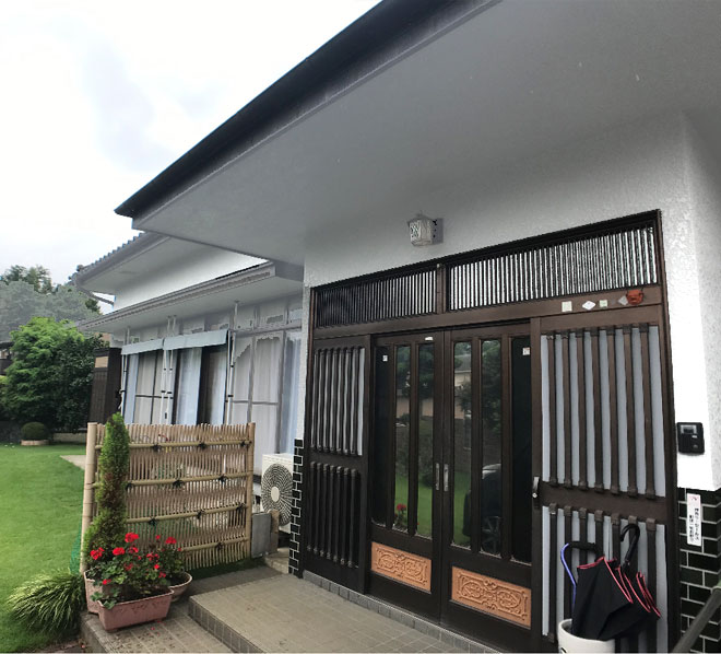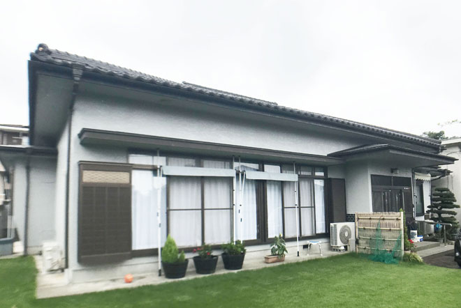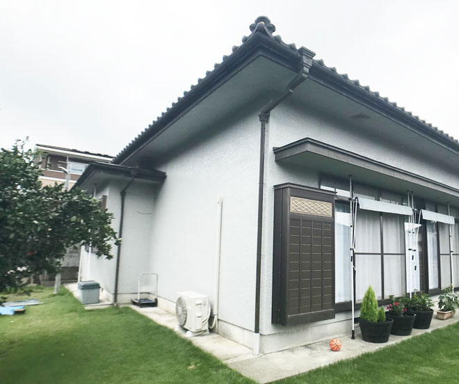 - 最初は屋根のリフォームを検討していたとのこですが、改めて屋根瓦を調査するとまだまだ問題ない状態でした。 その為、外壁塗装のみ実施、多くの外壁塗装現場同様、同じ系統の色で塗装しました。雨が多く続いており予定通り竣工できるか心配もありましたが、 無事に塗装をする事ができました。 屋根は先々で検討いただければと考えています。
